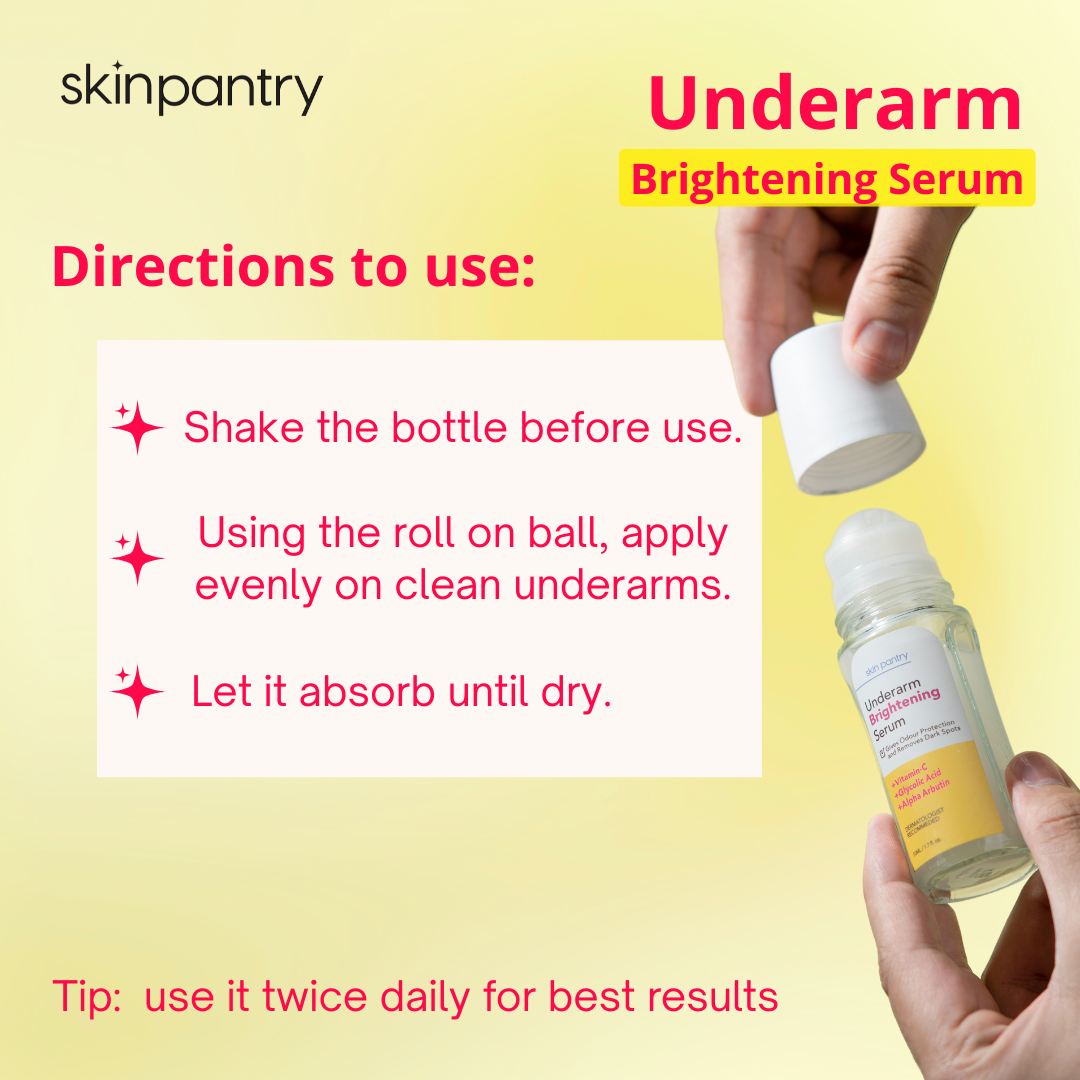 While you can try DIY remedies at home, we suggest using a serum. An underarm-whitening serum contains multiple active ingredients that work together to deliver the required nutrients.